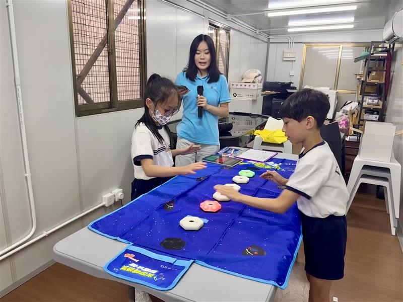 三年級同學在「綠D班」流動環保教室透過全方位多媒體互動學習體驗,學習全球暖化和氣候變化的知識、減碳生活資訊。